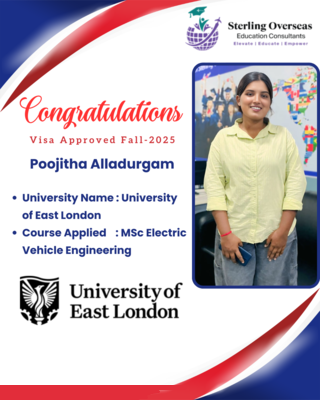I’m Sreelatha Dirisenapu, the founder of Sterling Overseas Education Consultants. My journey into the realm of international education was profoundly shaped by my own experience studying abroad (USA). Immersed in a new culture and academic environment, I discovered firsthand the transformative power of global education. This experience not only broadened my horizons but also ignited a passion within me to help others navigate the complexities of pursuing education overseas.